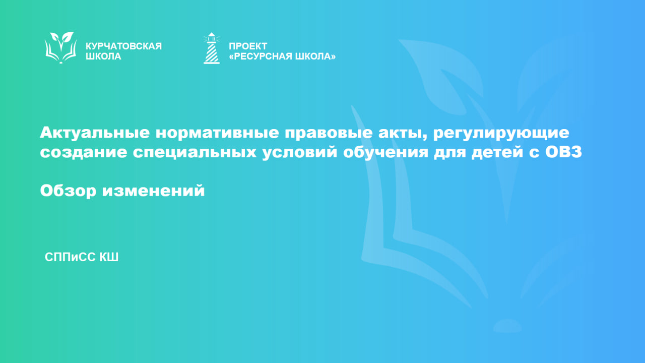Анонс мероприятия: Актуальные нормативные правовые акты, регулирующие создание специальных условий обучения для детей с ОВЗ
