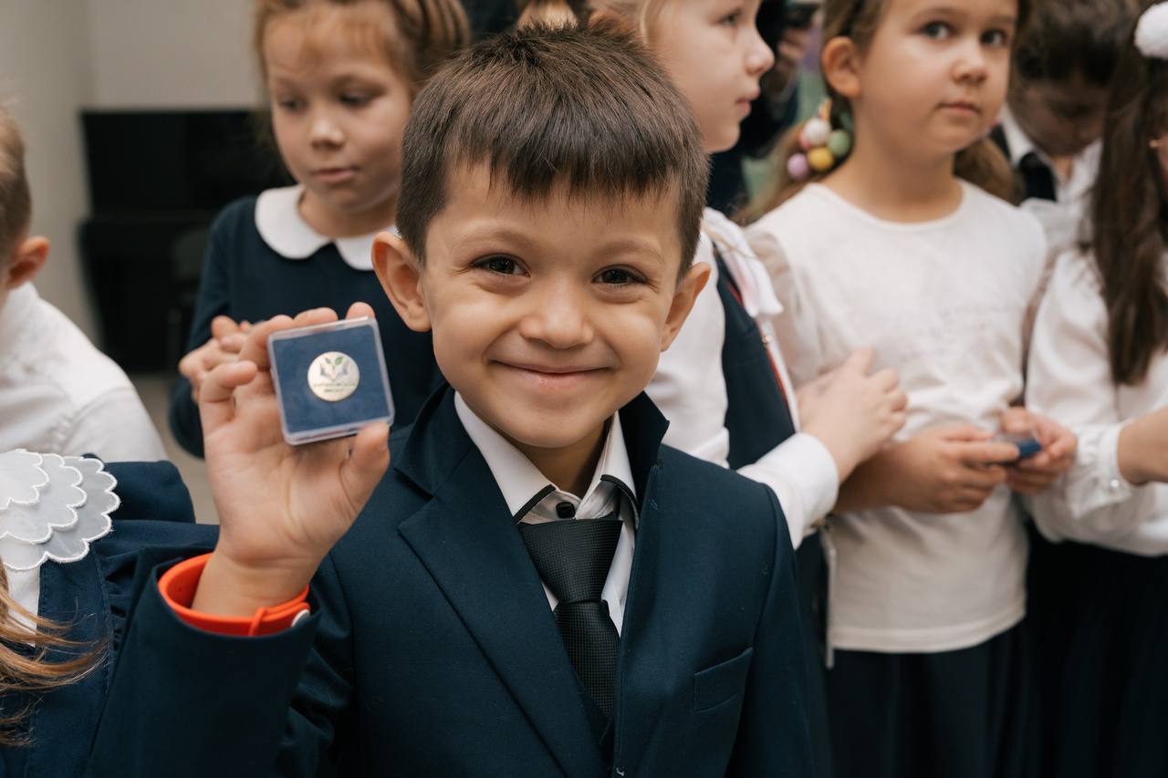 Теперь каждый из наших маленьких героев официально стал частью нашей огромной и дружной команды Курчатовцев, получив свой особый значок нашей школы.