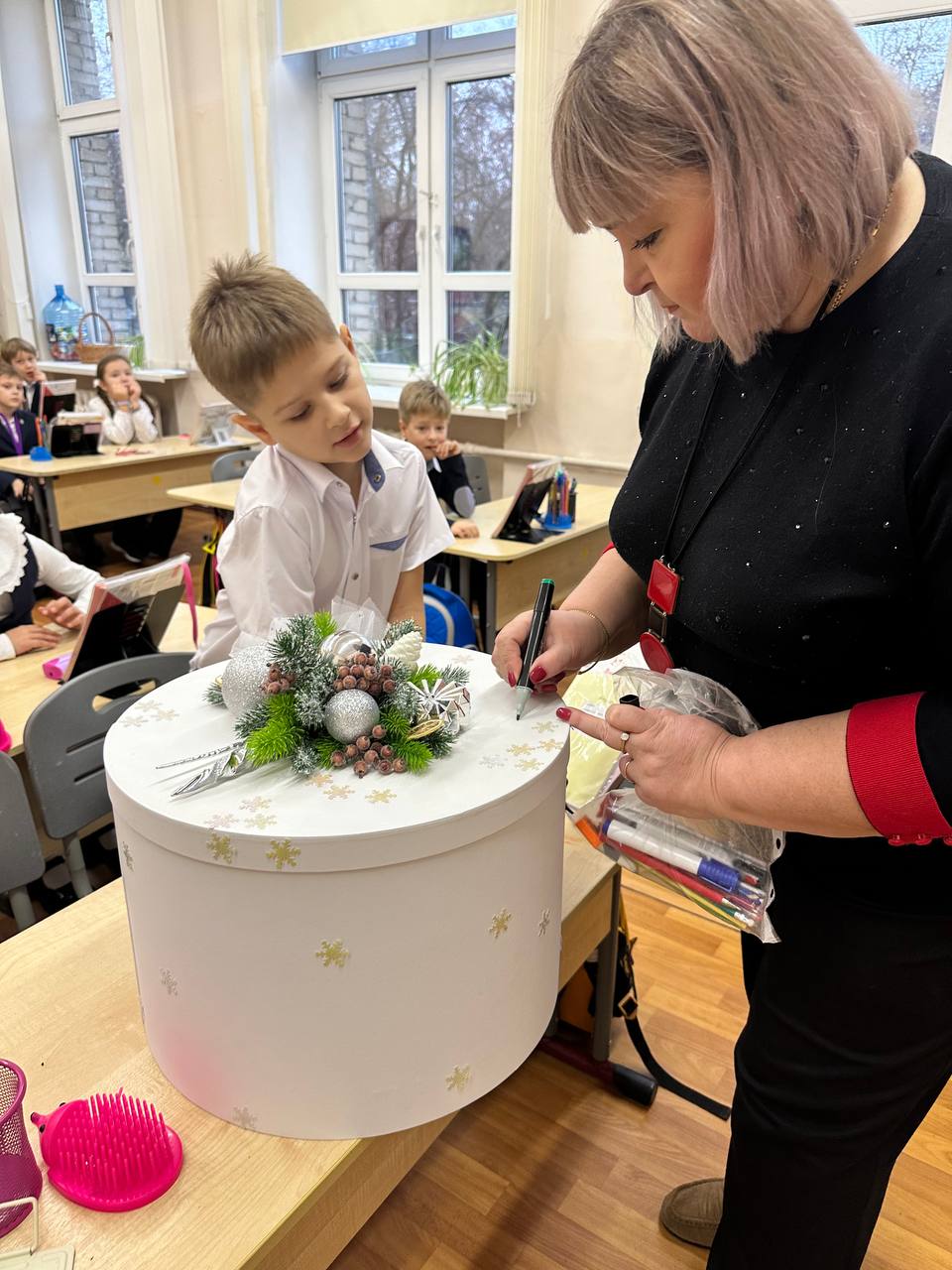 Ученики уже сделали яркие фотографии, добавили свои тёплые пожелания и аккуратно спрятали сюрпризы в коробку.